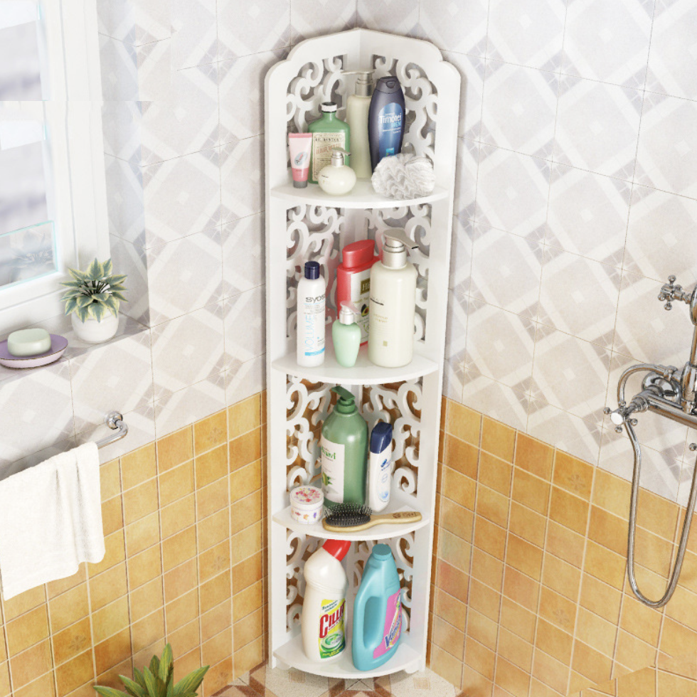 Простий та універсальний кутовий стелаж для ванної кімнати й туалету заощаджує простір, забезпечує швидкий доступ до речей, допомагає тримати їх у порядку та додає естетичності приміщенню.